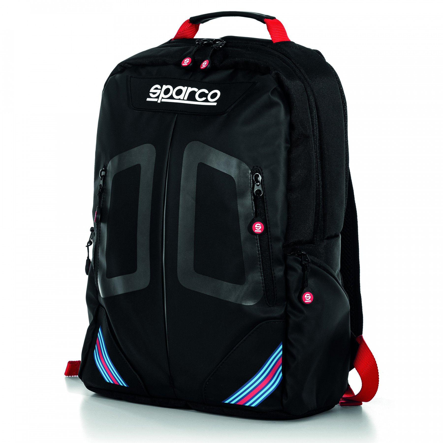 – 2 hidden front pockets with graphics that echo the Sparco seat belt slider